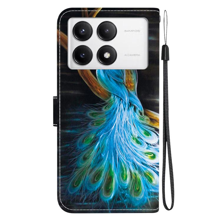 Funda de Cuero con Dibujo de Colores y Textura de Cristal para Redmi K70/K70 Pro (Pavo Real)