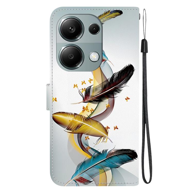 Funda de Cuero con Dibujo de Colores y Textura de Cristal para Redmi Note 13 Pro 4G / Poco M6 Pro (Plumas de Mariposa Doradas)