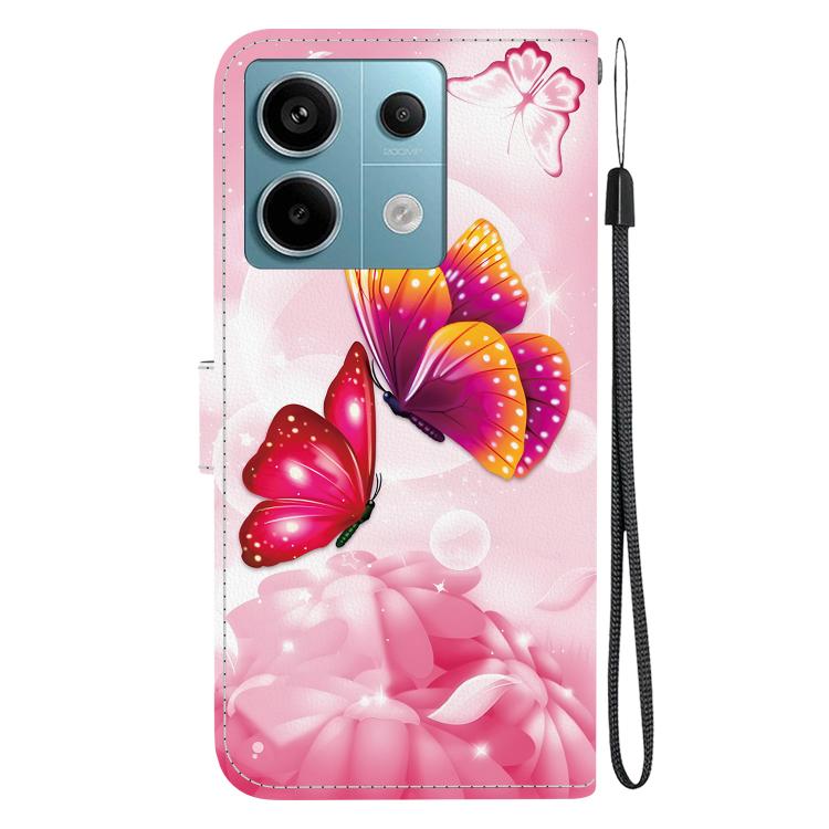 Funda de Cuero con Dibujo de Colores y Textura de Cristal para Redmi Note 13 Pro 5G (Mariposas Rosas)