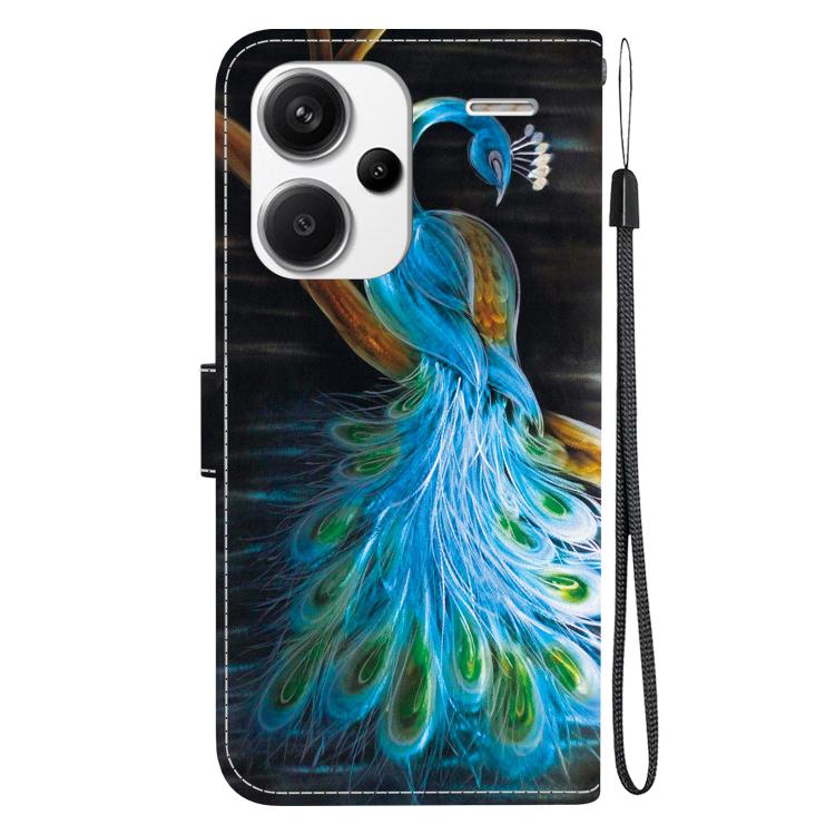 Funda de Cuero con Dibujo de Colores y Textura de Cristal para Redmi Note 13 Pro+ 5G (Pavo Real)