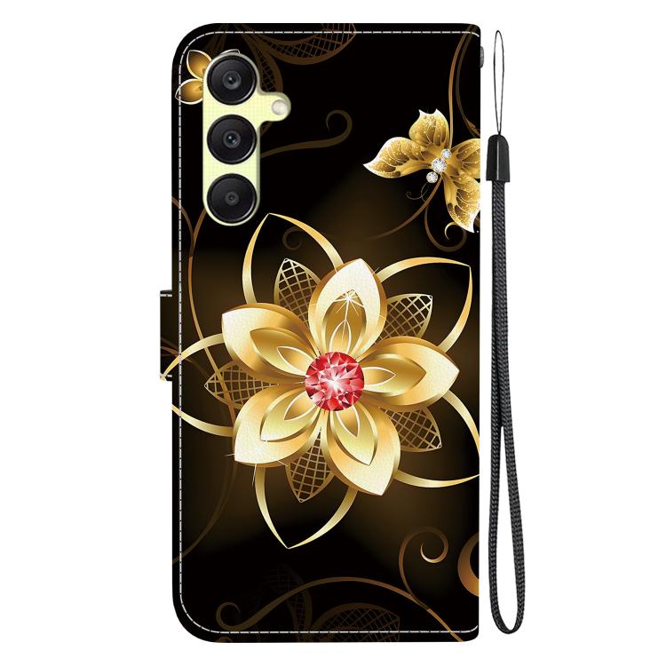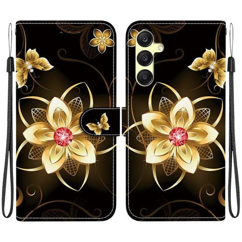 Funda de Cuero Samsung Galaxy A25 5G Dibujo Colores Textura Cristal (Flor Dorada)