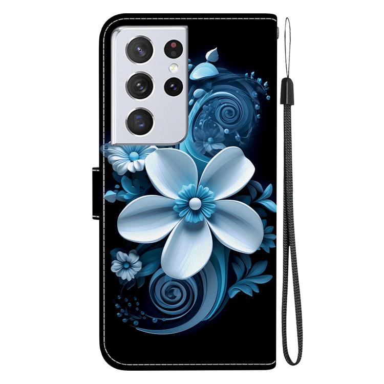Funda Cuero Samsung Galaxy S21 Ultra 5G Dibujo Colores Textura Cristal (Orquídea Negra)
