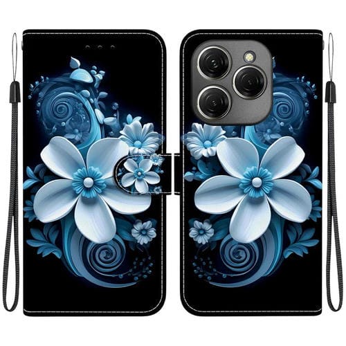Funda de Cuero para Tecno Spark 20 Pro con Dibujo de Colores y Textura de Cristal (Orquídea Negra)