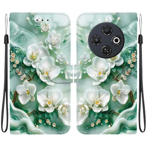 Funda de Cuero para Tecno Spark 30C con Dibujo de Colores y Textura de Cristal (Flores de Jade)