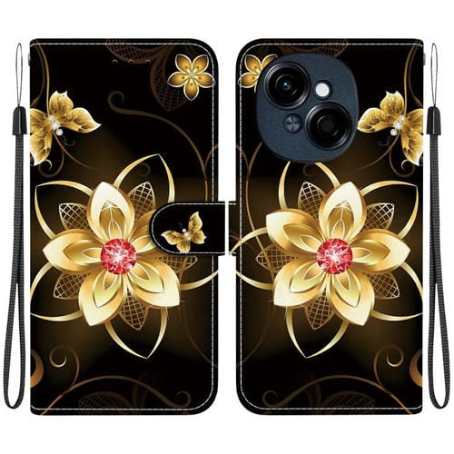 Funda de Cuero para Tecno Spark Go 1 y Pop 9 Pro con Dibujo de Colores y Textura de Cristal (Flor Dorada)