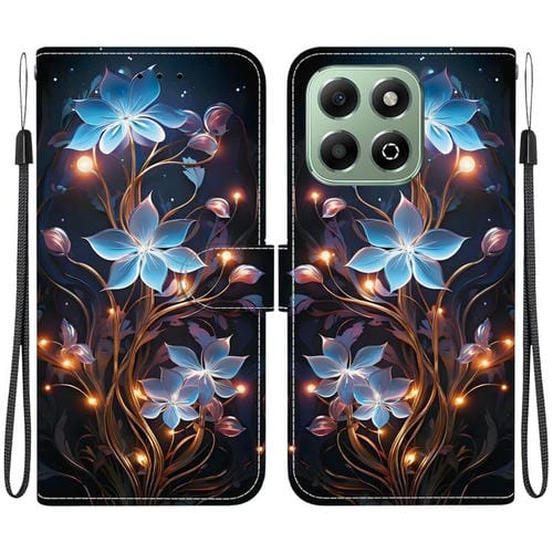 Funda de Cuero Honor X6B con Dibujo de Colores y Textura de Cristal (Flor de Linterna Pequeña)
