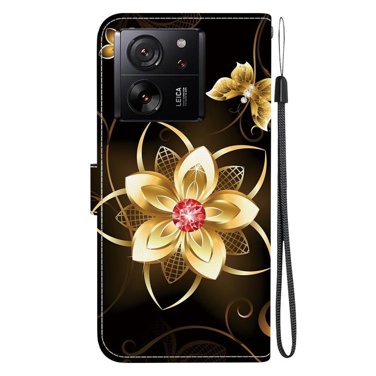 Funda de Cuero con Dibujo de Colores y Textura de Cristal para Xiaomi 13T/13T Pro (Flor Dorada)