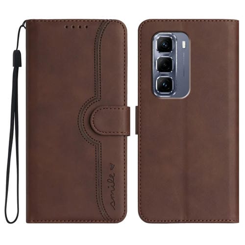 Funda de Cuero con Diseño de Corazón para Infinix Hot 50 Pro+ 4G (Marrón)