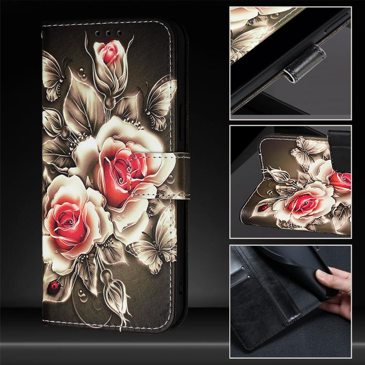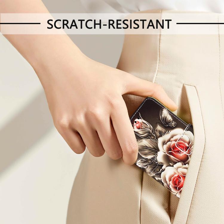 Funda de Cuero para ZTE Nubia Z60 Ultra con Diseño de Dibujos (Rosas Sobre Negro)