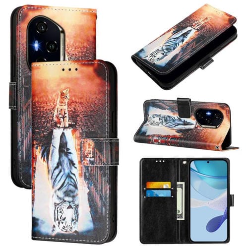 Funda de Cuero para Honor 300 Pro/300 Ultra con Diseño de Gatos y Tigres (Colores Lisos)