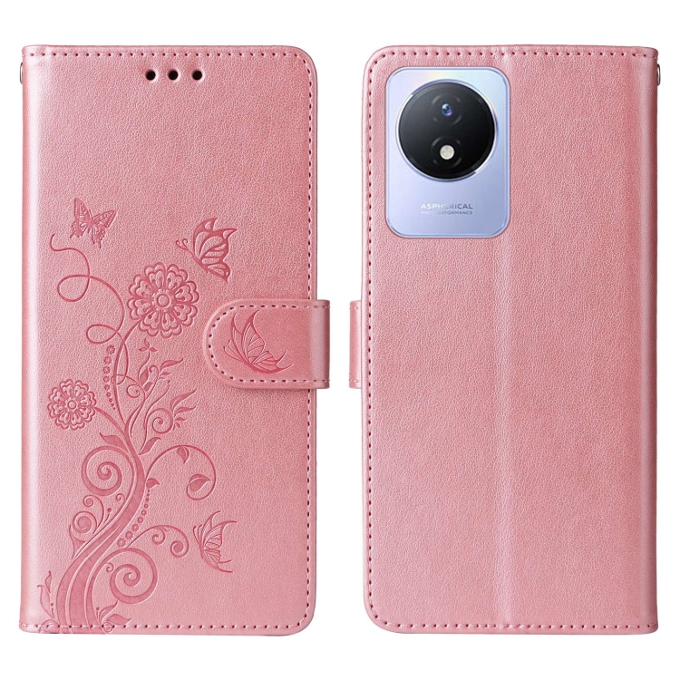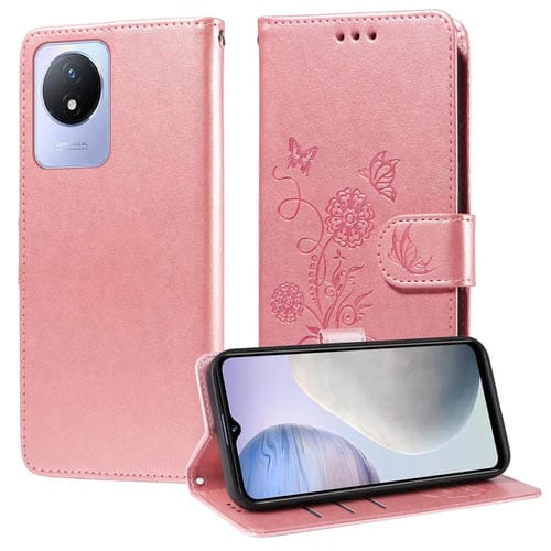 Funda de Cuero con Diseño de Mariposas En Relieve para Vivo Y02 4G / Y11 2023 / Y02A (Oro Rosa)