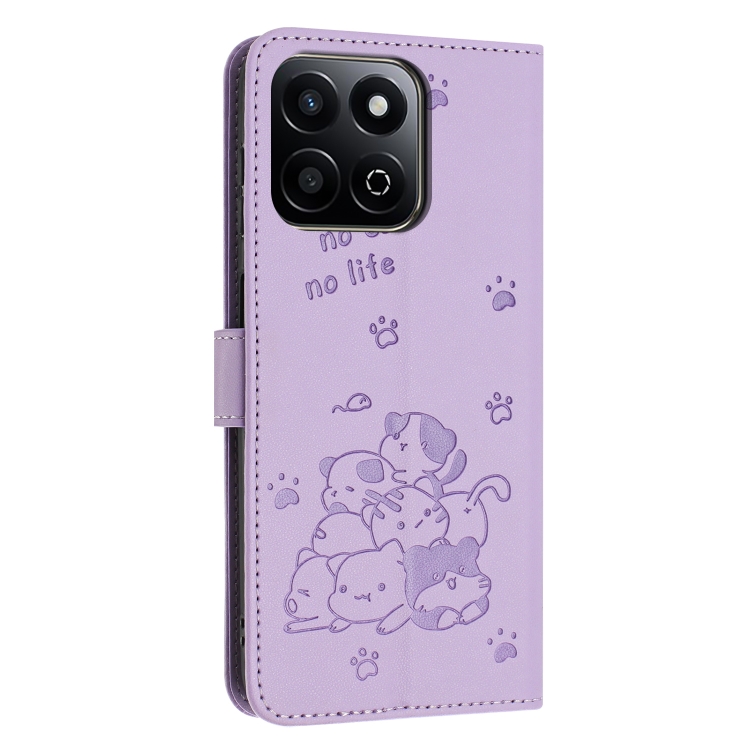Funda de Cuero para Honor X7C 4G/200 con Diseño de Gatito en Relieve y Cordón (Morado)