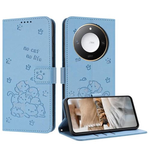 Funda de Cuero Honor X60/X9C con Diseño de Gatito en Relieve y Cordón (Azul)