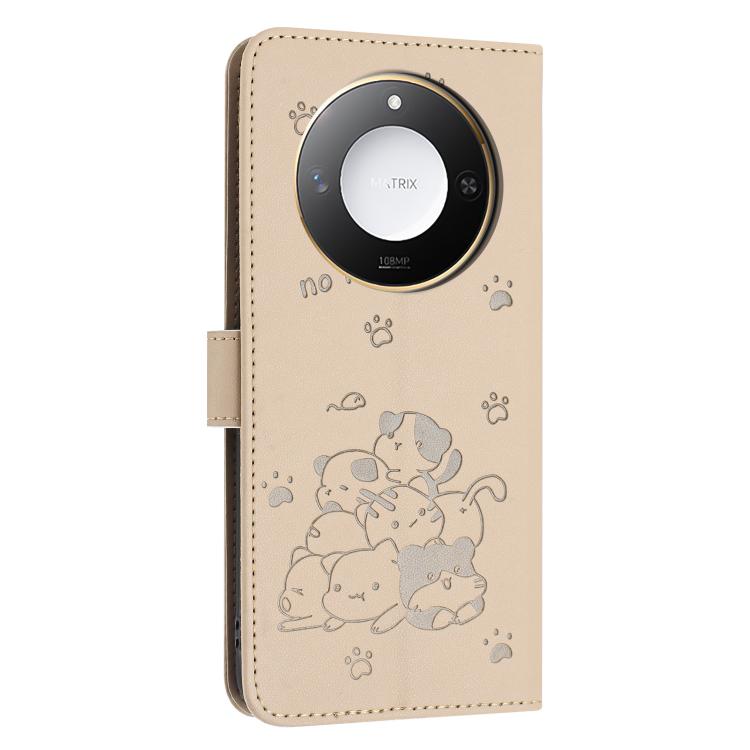 Funda de Cuero para Honor X60/X9C con Diseño de Gatito en Relieve y Cordón (Beige)