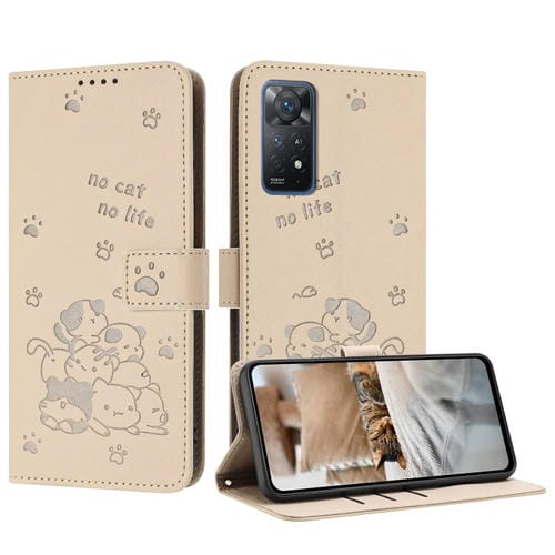 Funda de Piel con Diseño de Gatito En Relieve para Redmi Note 12 Pro 4G con Cordón (Beige)