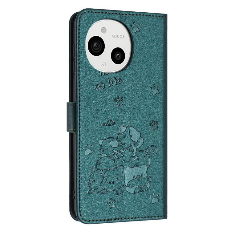 Funda Cuero Sharp Aquos Sense 9 Diseño Gatito En Relieve con Cordón (Verde Oscuro)