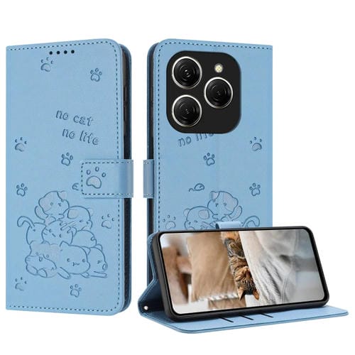 Funda de Cuero con Diseño de Gatito para Tecno Spark 20 Pro 5G con Cordón (Azul)