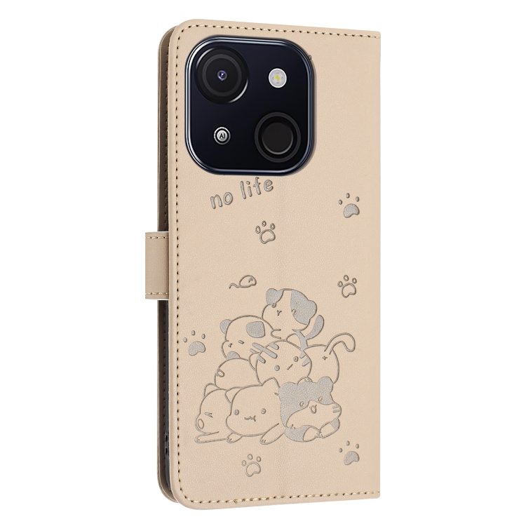 Funda de Cuero para Teléfono Itel A50C con Diseño de Gatito en Relieve y Cordón (Beige)