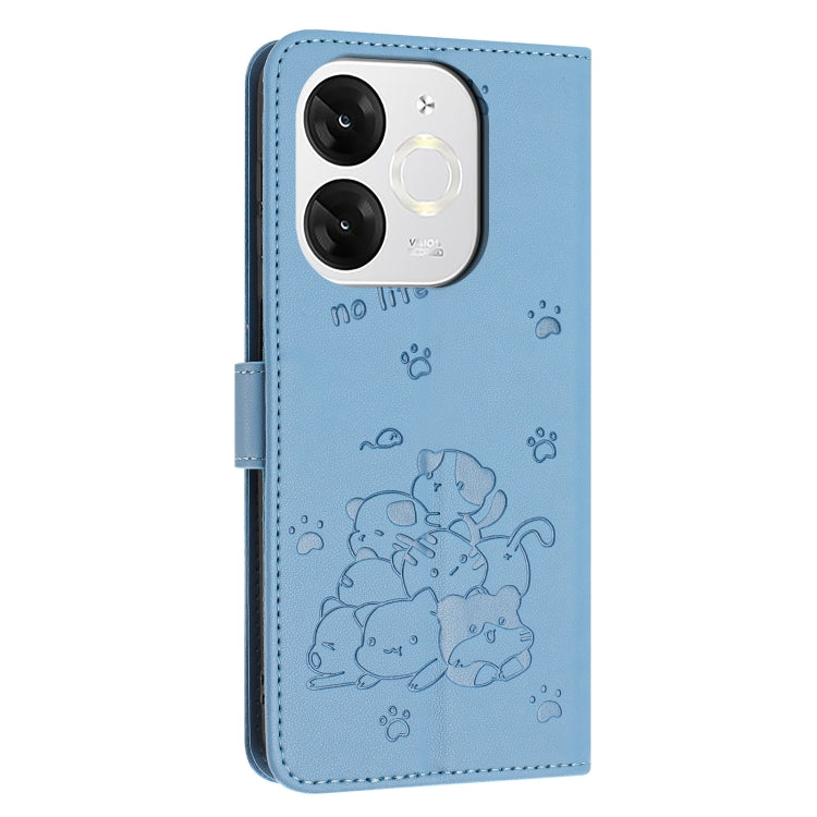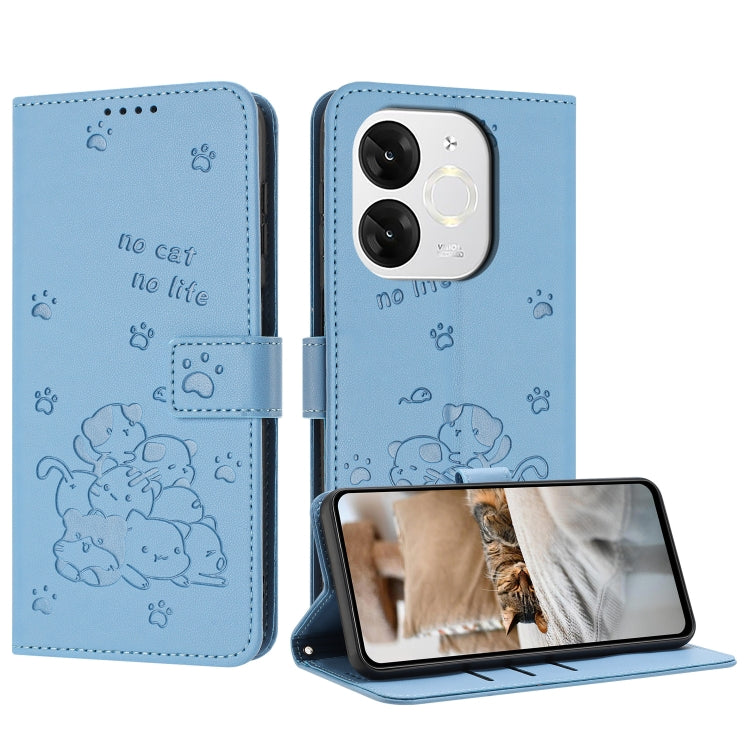 Funda de Cuero para Itel A80 con Diseño de Gatito en Relieve y Cordón (Azul)