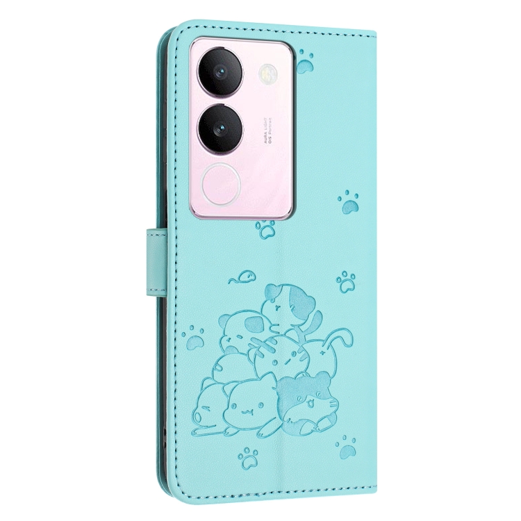 Funda de Piel con Diseño de Gatito En Relieve y Cordón para Vivo S17/S17 Pro/S17T (Verde Menta)