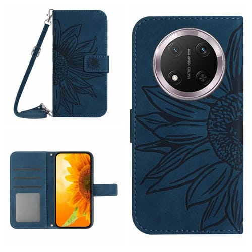 Funda de Cuero Honor X9C con Diseño de Girasol y Cordón (Azul Tinta)