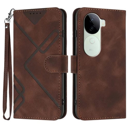 Funda de Cuero con Textura de Piel Sintética con Diseño de Líneas Indias para Vivo Iqoo Z9S/V40E (Café)