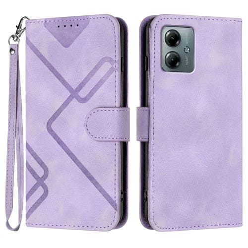 Funda de Cuero Motorola Moto G Play 2025 y G Power 2025 con Diseño de Líneas (Morado Claro)