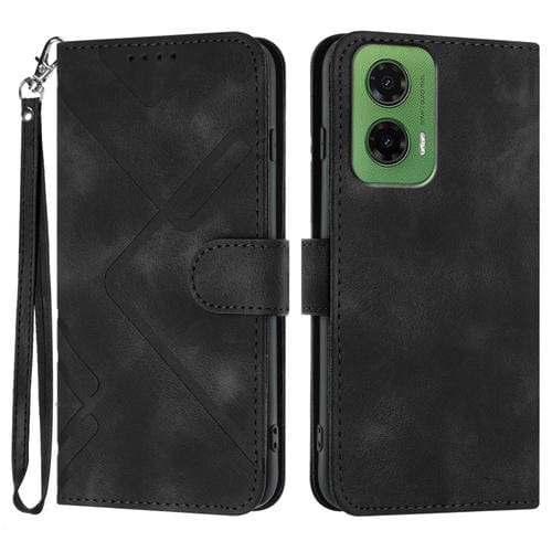 Funda de Cuero para Motorola Moto G35 con Diseño de Líneas y Tacto Suave (Negra)