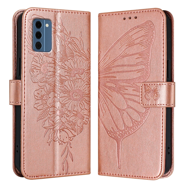Funda de Cuero para Nokia C300 con Diseño de Mariposa en Relieve (Oro Rosa)