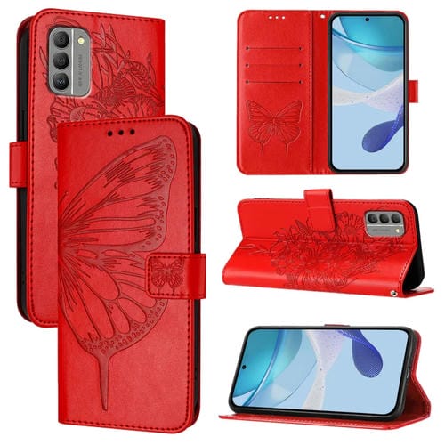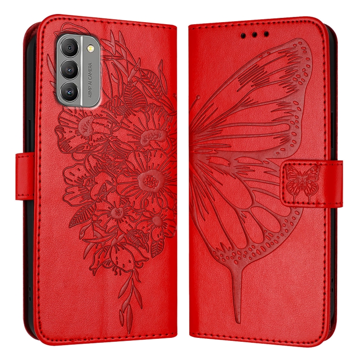 Funda de Cuero para Nokia G400 con Diseño de Mariposa en Relieve (Roja)