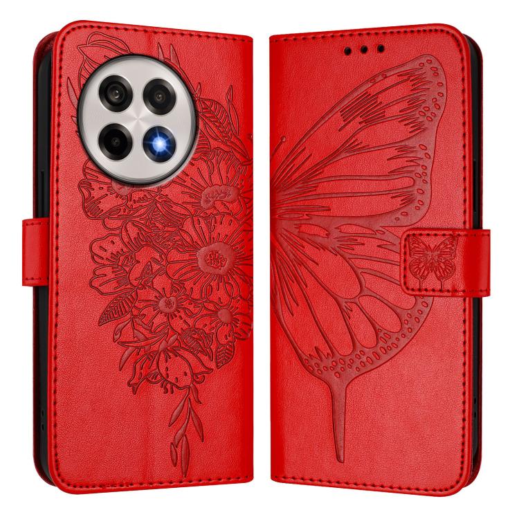 Funda de Cuero OnePlus Ace 5 Pro/Ace 5 con Diseño Mariposa en Relieve (Roja)