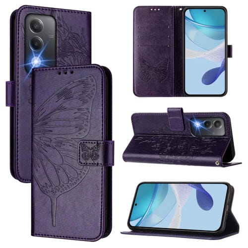Funda de Piel con Diseño de Mariposa En Relieve para Oppo A80 5G Eu (Morado Oscuro)