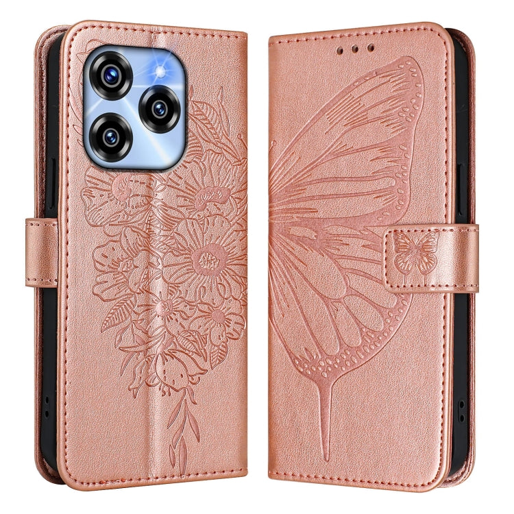 Funda de Cuero para Oukitel C50 con Diseño de Mariposa en Relieve (Oro Rosa)