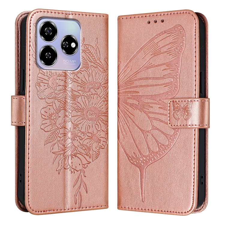 Funda de Cuero ZTE Blade V60/Axon 60 4G con Mariposa en Relieve (Oro Rosa)