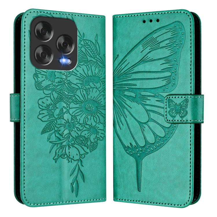 Funda de Cuero para ZTE Blade V70 con Diseño de Mariposa En Relieve (Verde)