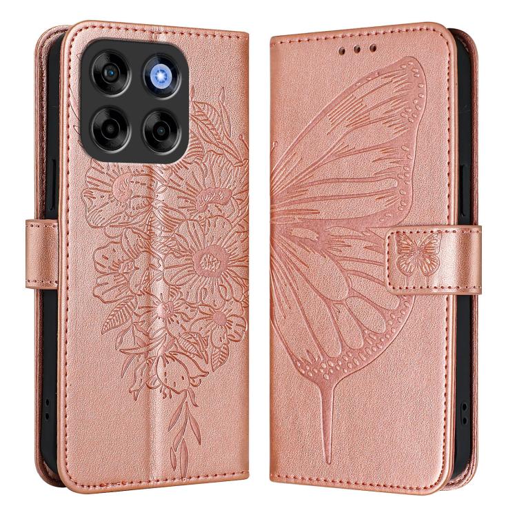Funda de Cuero con Mariposa En Relieve para ZTE Blade V70 Vita/V70 (Oro Rosa)