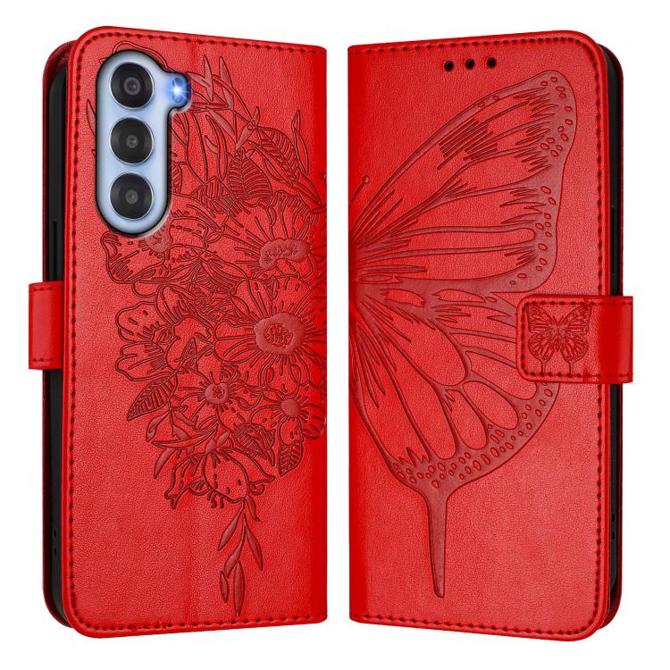 Funda de Cuero para ZTE Nubia S 5G A403Zt con Diseño de Mariposa en Relieve (Rojo)