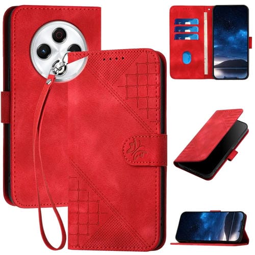 Funda de Cuero para Tecno Spark 30 4G con Diseño de Mariposa en Relieve y Cordón (Rojo)