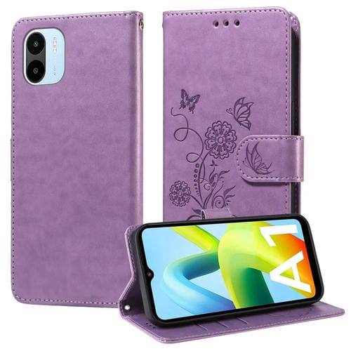 Funda de Cuero con Diseño de Mariposas y Flores En Relieve para Redmi A1 4G/A2 4G (Morado)