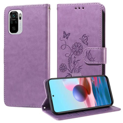 Funda de Cuero con Diseño de Mariposas y Flores En Relieve para Redmi Note 10 4G India/10S 4G (Morado)