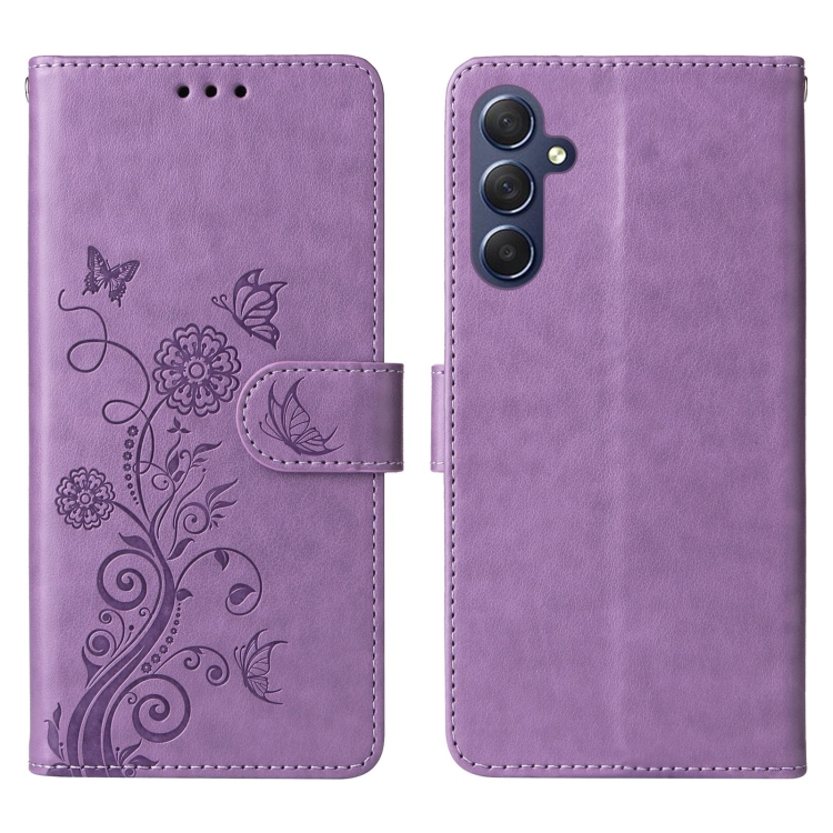 Funda Cuero Samsung Galaxy M15 5G F15 5G Diseño Mariposas Flores En Relieve (Morado)