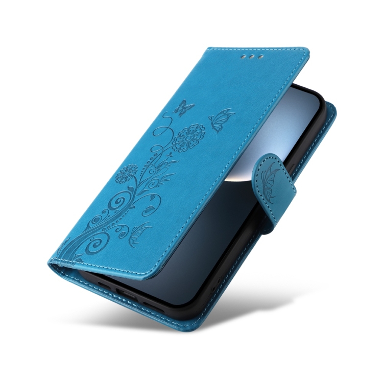 Funda de Cuero Honor Magic7 con Diseño de Mariposas y Flores en Relieve (Azul)