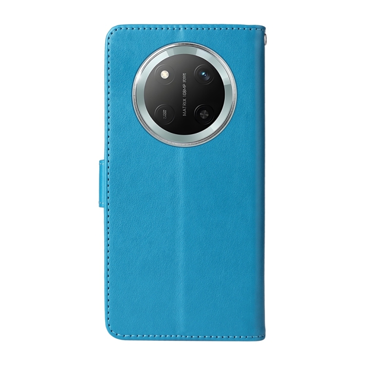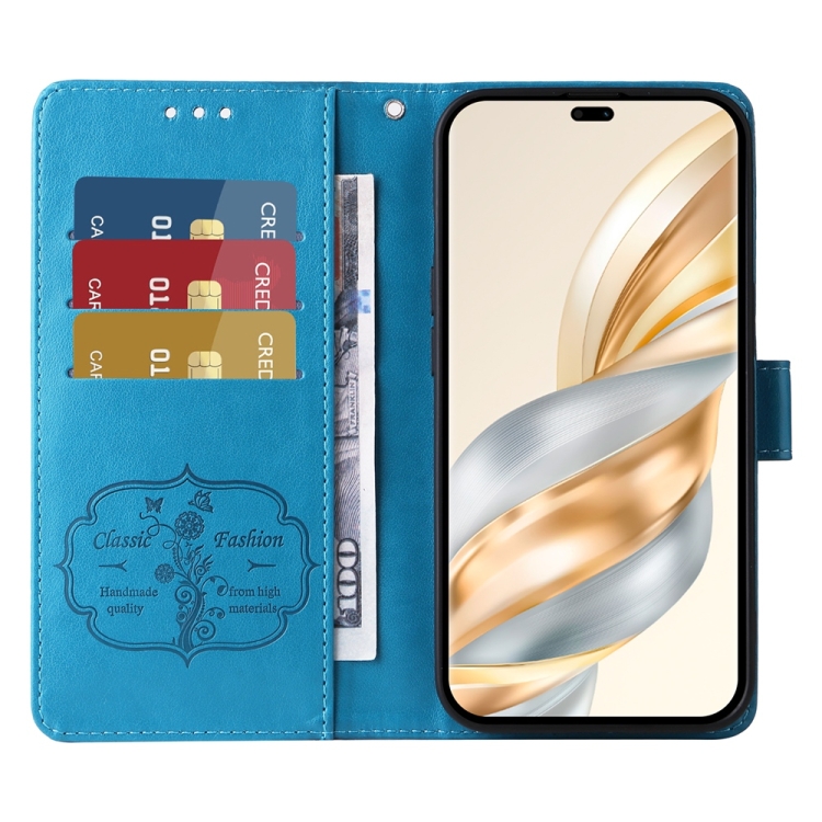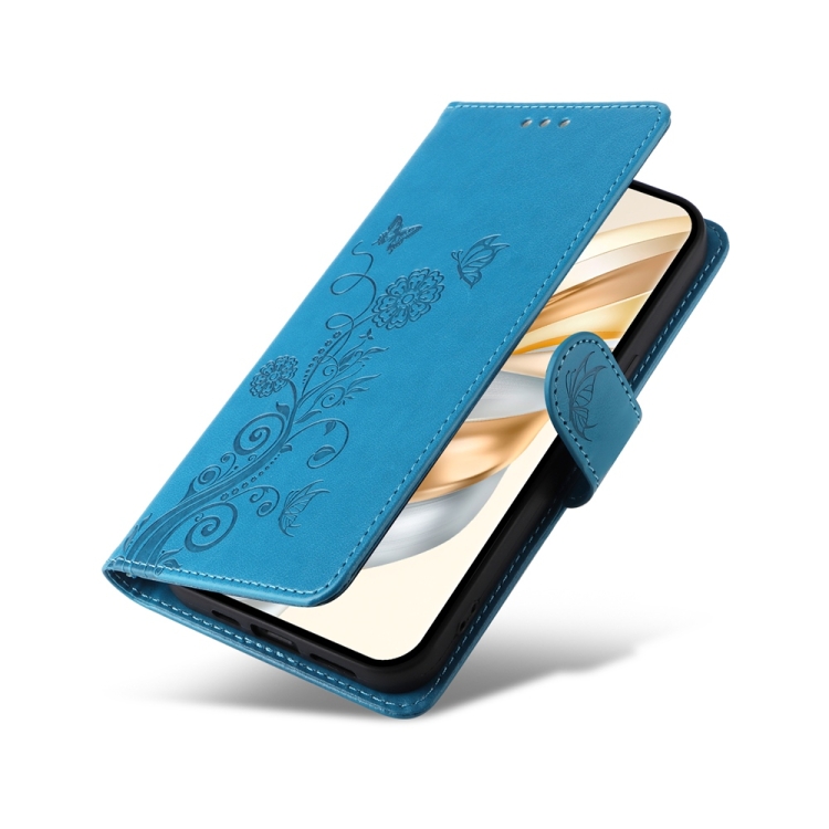 Funda de Cuero Honor X9C Magic7 Lite diseño Mariposas y Flores en Relieve (Azul)