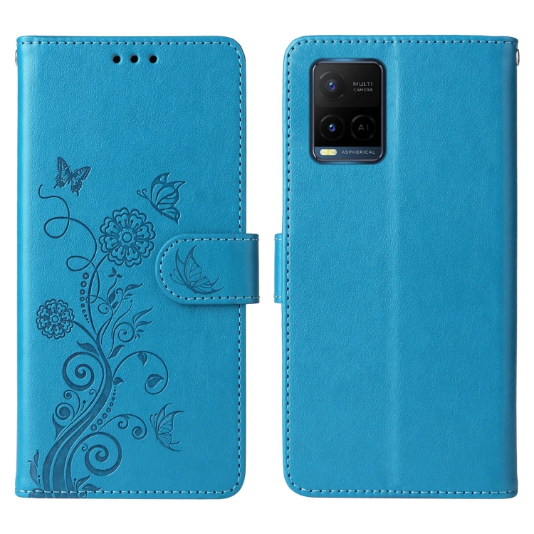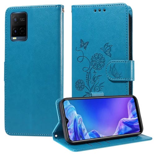 Funda de Cuero con Diseño de Mariposas En Relieve para Vivo Y21 2021 / Y21S / Y33S 4G (Azul)
