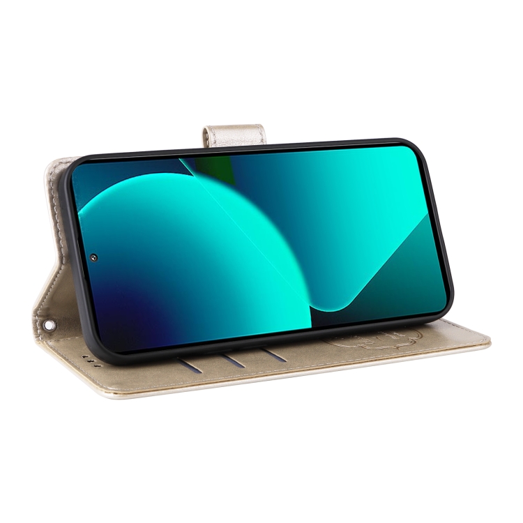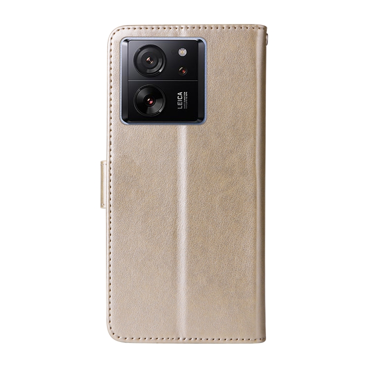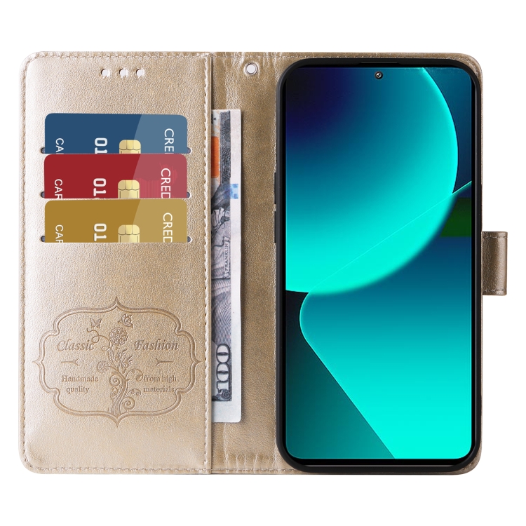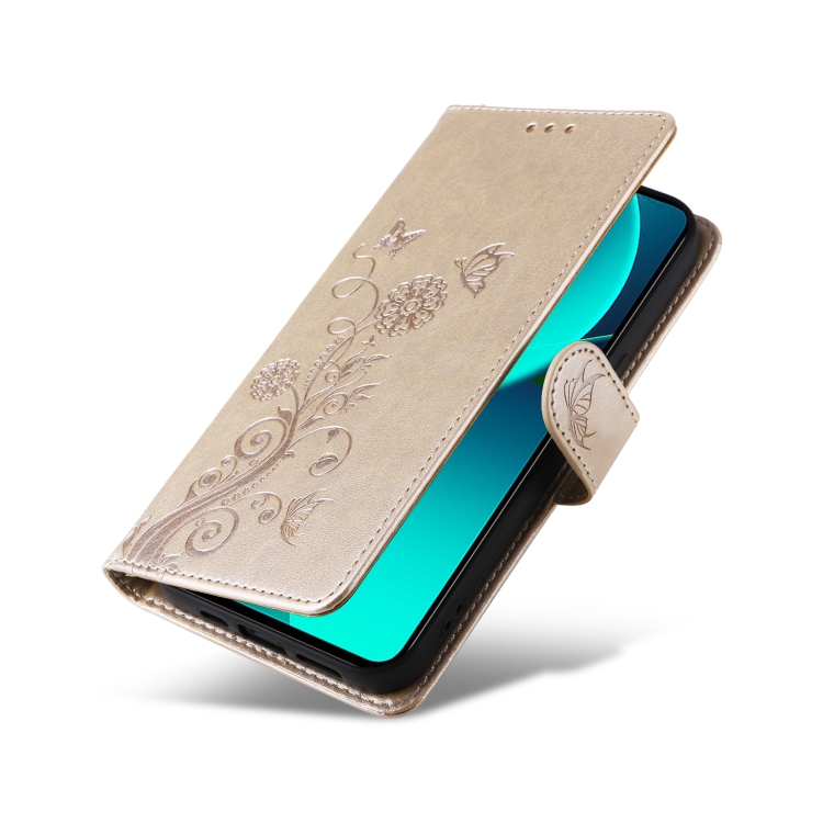 Funda de Cuero con Diseño de Mariposas y Flores En Relieve para Xiaomi 13T/13T Pro/Redmi K60 Ultra (Dorada)