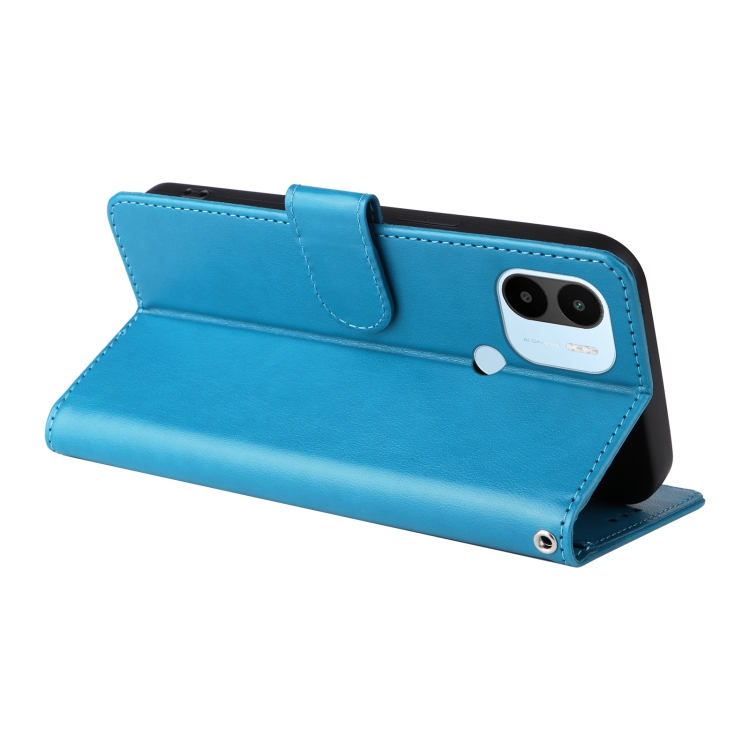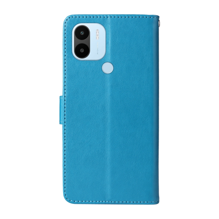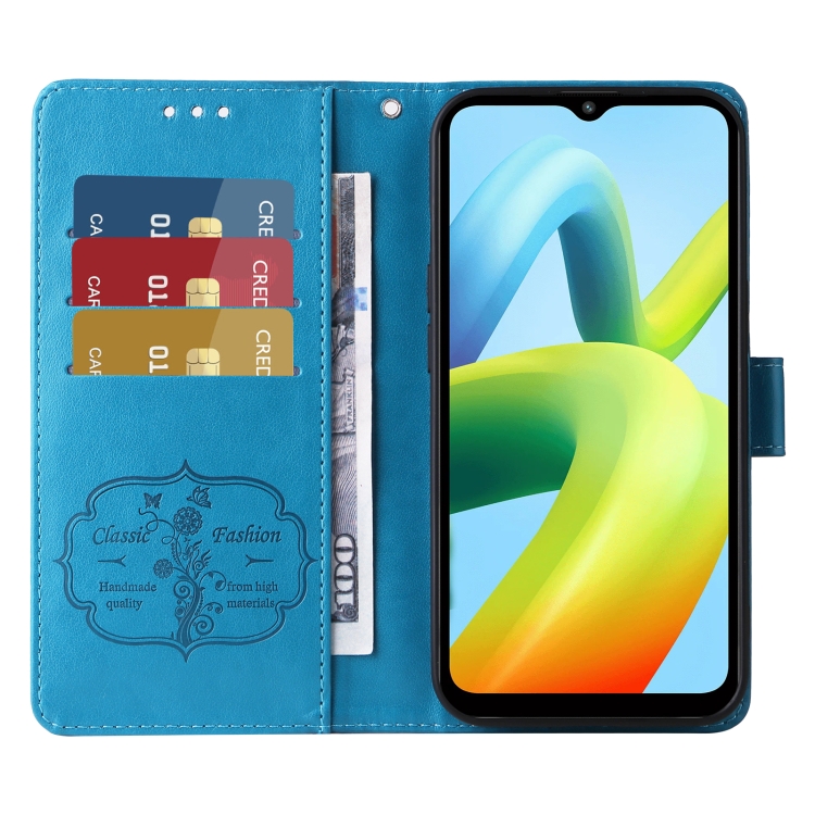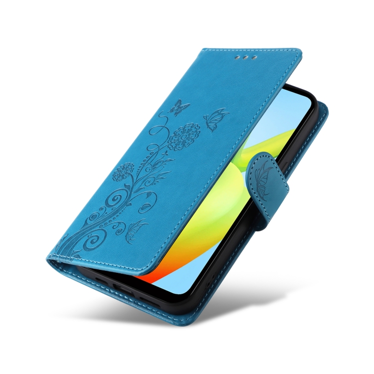 Funda de Cuero con Diseño de Mariposas y Flores En Relieve para Xiaomi Poco C50/C51 (Azul)