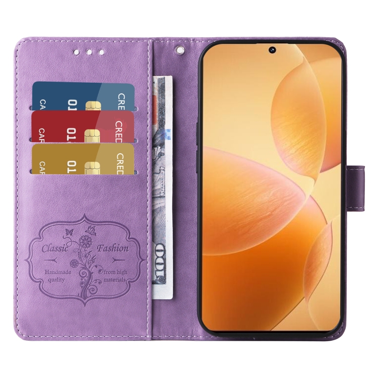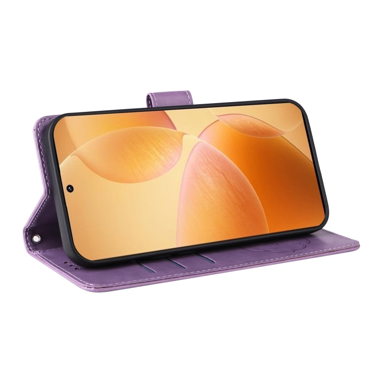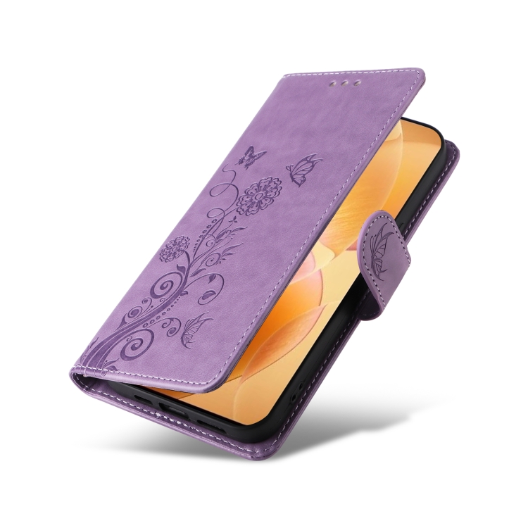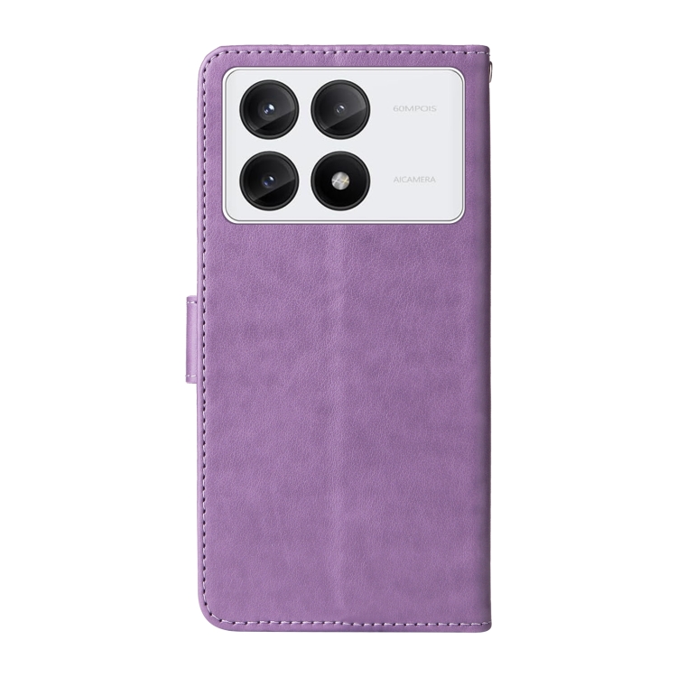 Funda de Cuero con Diseño de Mariposas y Flores En Relieve para Xiaomi Poco F6 Pro (Morado)
