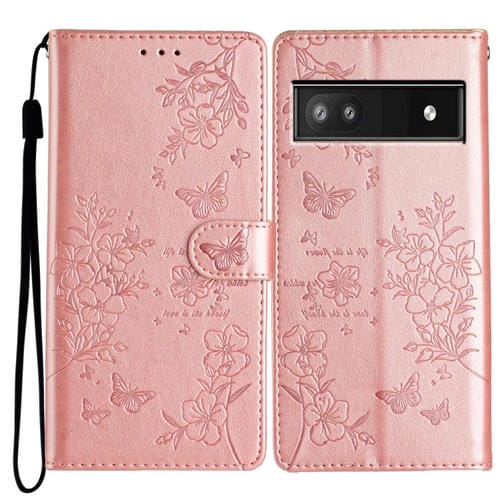 Funda de Cuero Google Pixel 9A Diseño Mariposas y Flores (Oro Rosa)