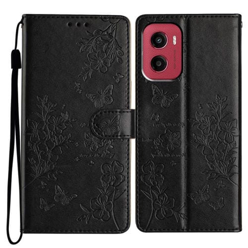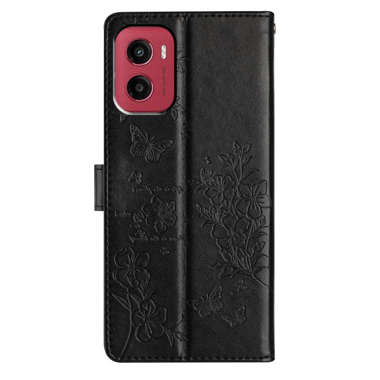 Funda de Cuero para Motorola Moto G05 con Diseño de Mariposas y Flores (Negra)