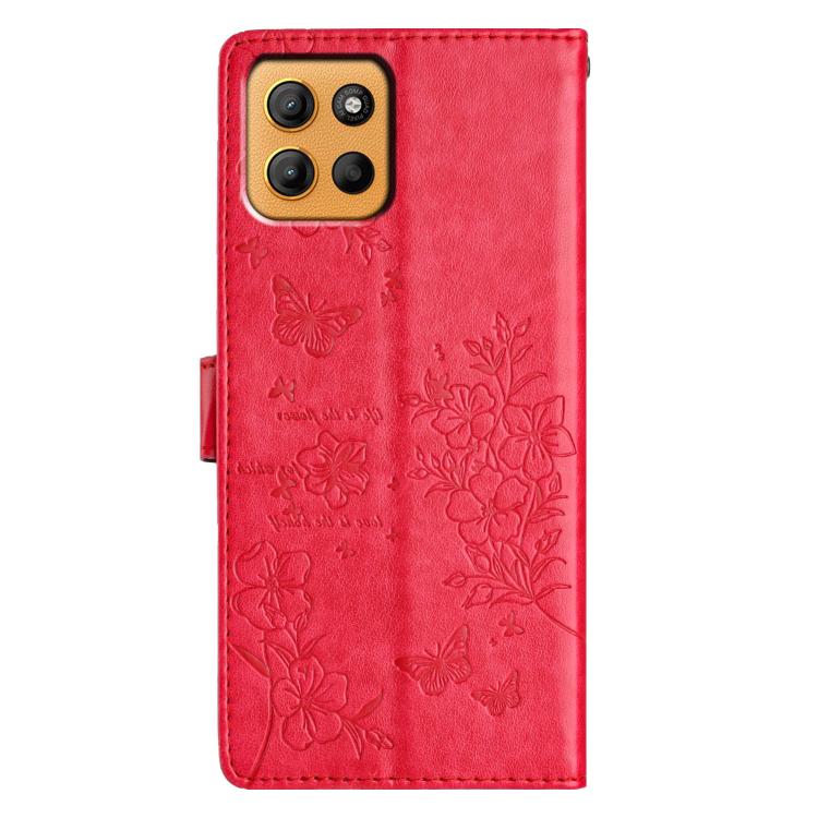 Funda de Cuero Motorola Moto G15 con Diseño de Mariposas y Flores (Roja)